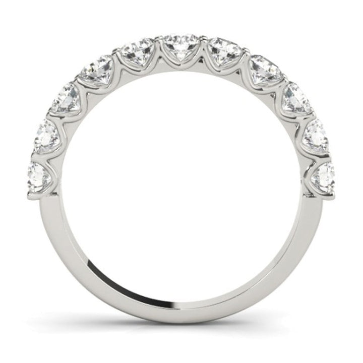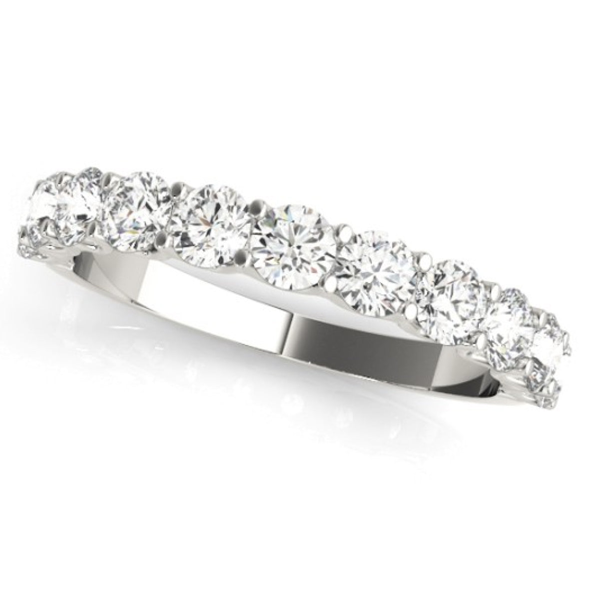 Crafted in 14K white gold, featuring a 1/2 ct round brilliant-cut center diamond and 21 round-cut accent diamonds in a prong setting. Includes a matching wedding band.