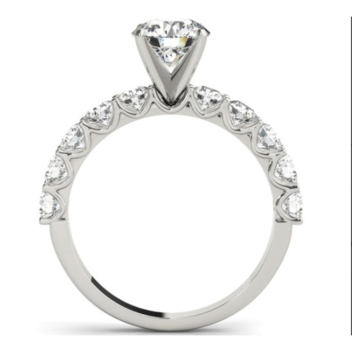 This 2 1/2 Ct Diamond Round Cut Engagement Ring & Matching Wedding Band by Pompeii3 is a complete bridal set with timeless appeal. The engagement ring features a 1/2 ct round brilliant-cut center diamond, accented by 21 round-cut diamonds along the band. The included wedding band is designed to sit flush, completing the look with seamless elegance in high-polished 14K white gold.