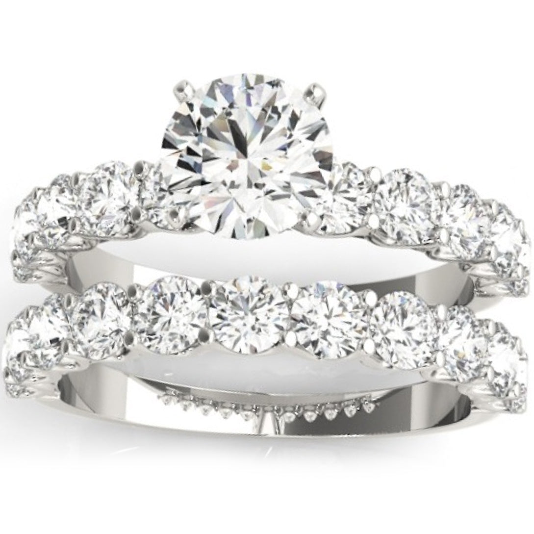 2 1/2 Ct Diamond Round Cut Engagement Ring Matching Wedding Band 14k White Gold