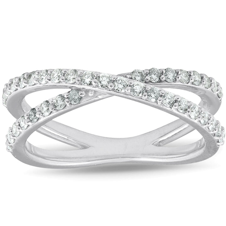 1/2Ct Diamond X Ring Wide Womens Fashion Design Multi Row Band 10k White Gold