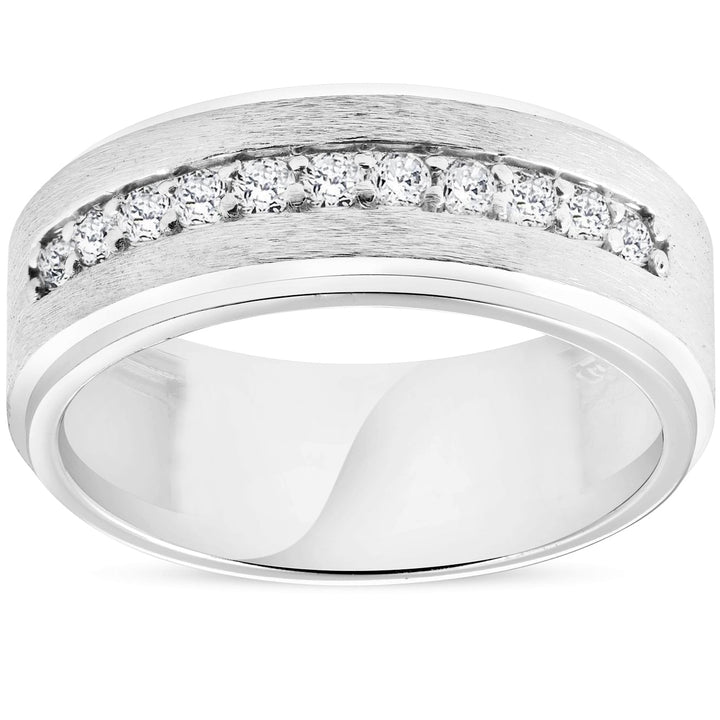 Mens 3/8ct White Gold Diamond 10k Brushed Wedding 8MM Anniversary Band