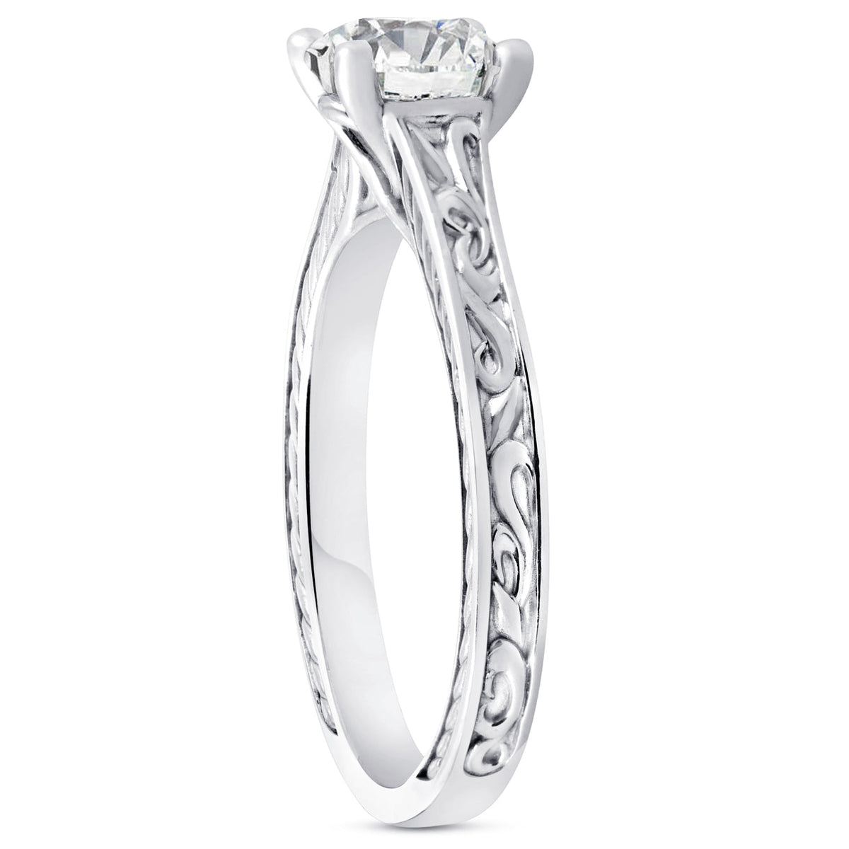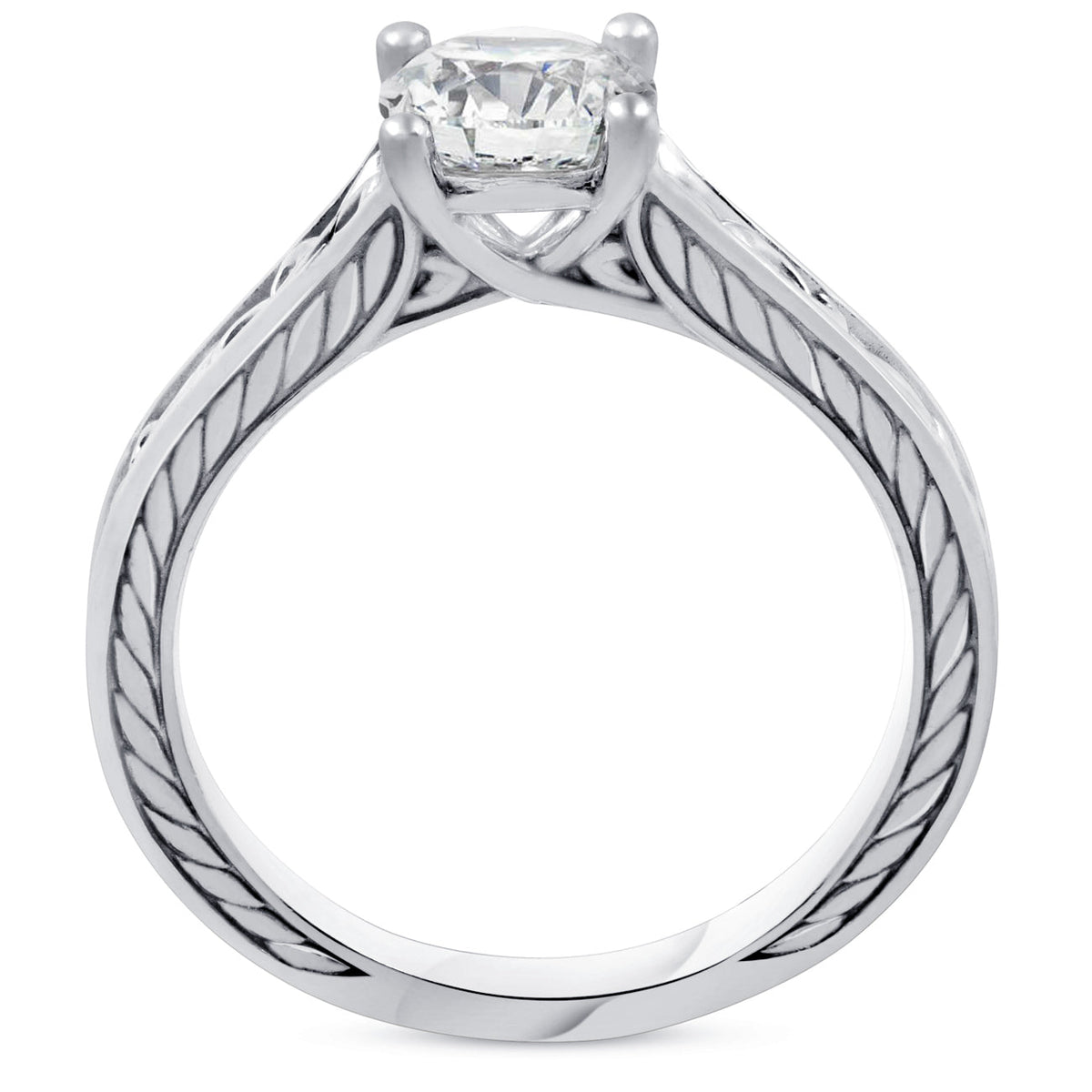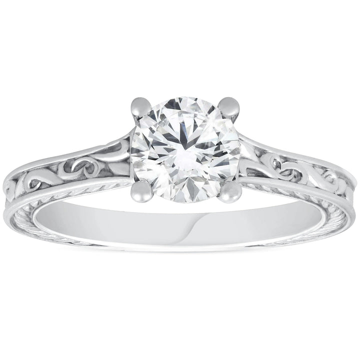 1ct Solitaire Round Cut Vintage Diamond Engagement Ring 14k White Gold