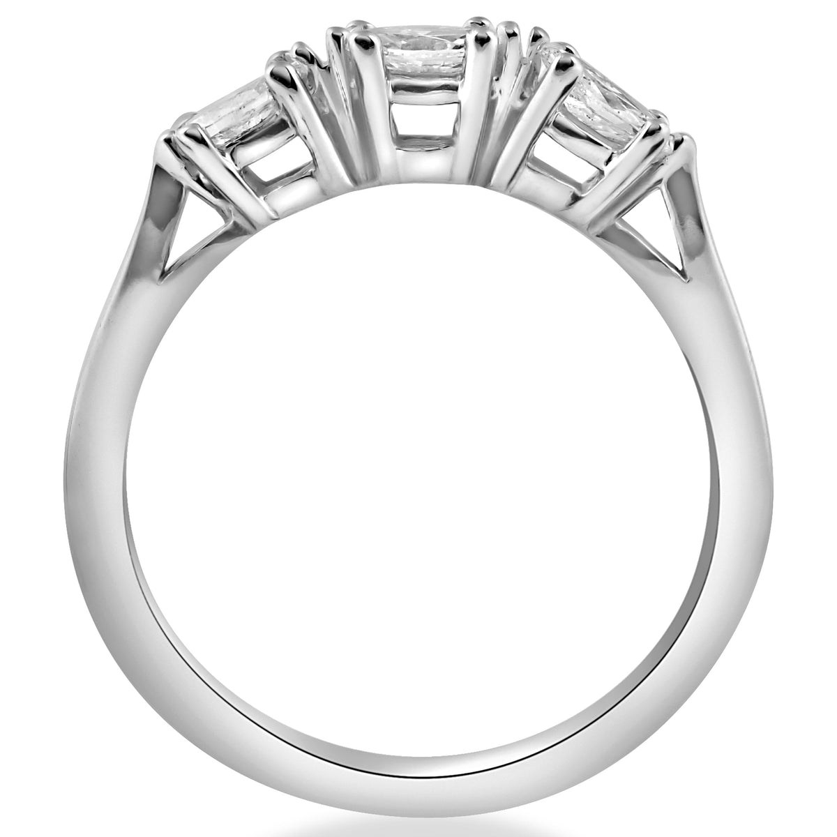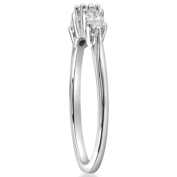 Crafted in 14K white gold, featuring three marquise-cut diamonds in a prong setting. Stackable design.