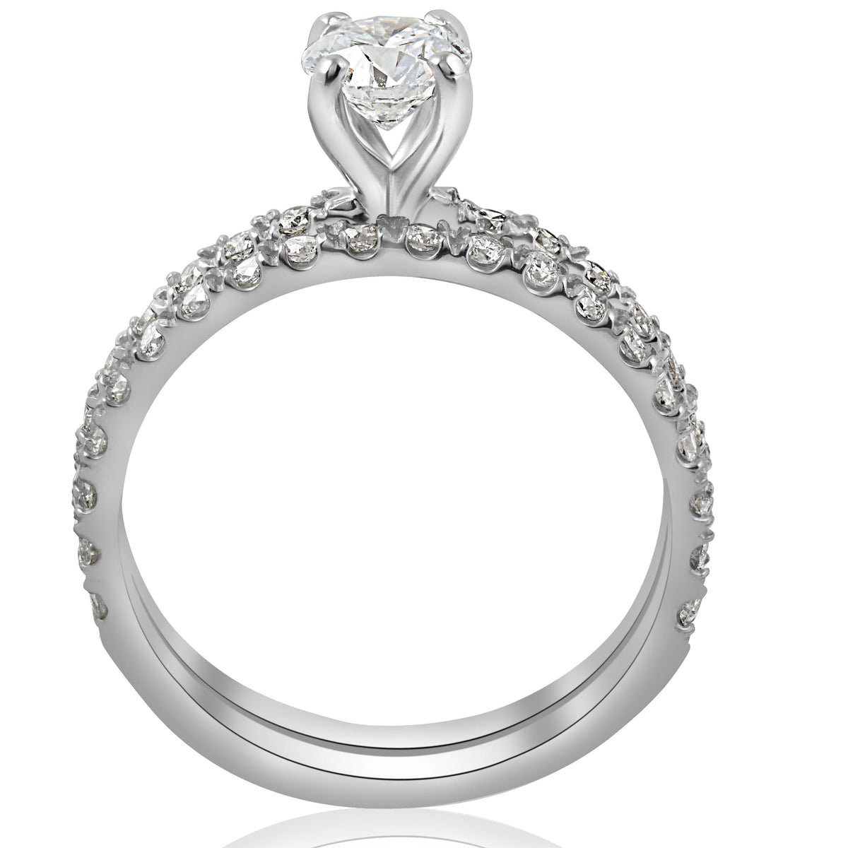 1 ct Diamond Engagement Wedding Ring French Pave Set 14k White Gold