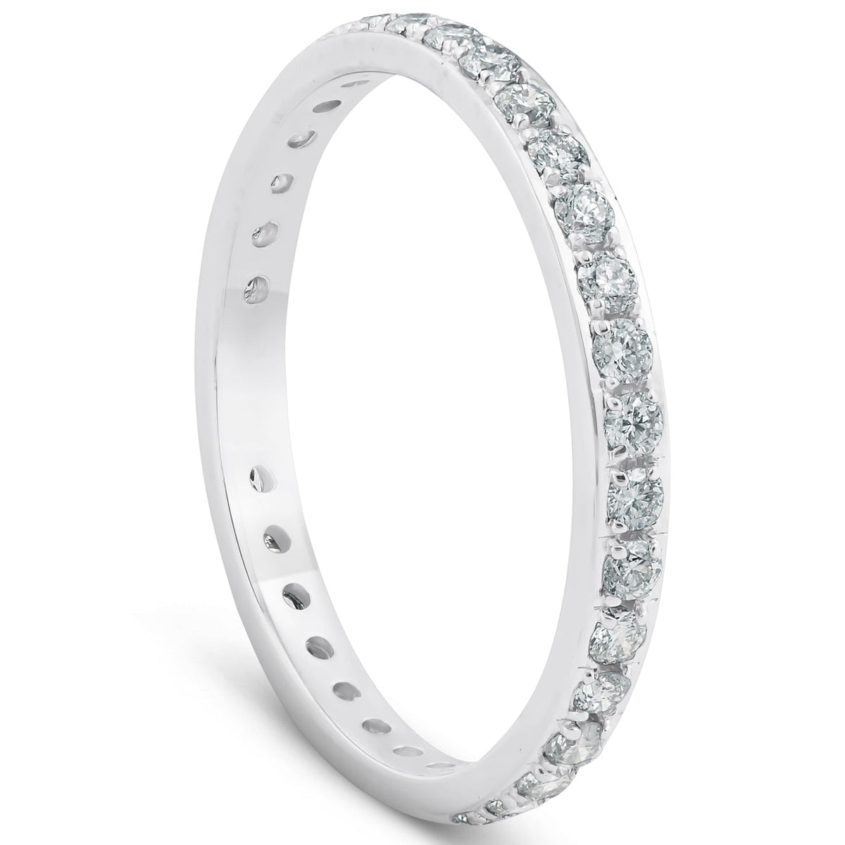 Crafted in 10K white gold, featuring round brilliant-cut genuine diamonds in a common prong eternity setting.