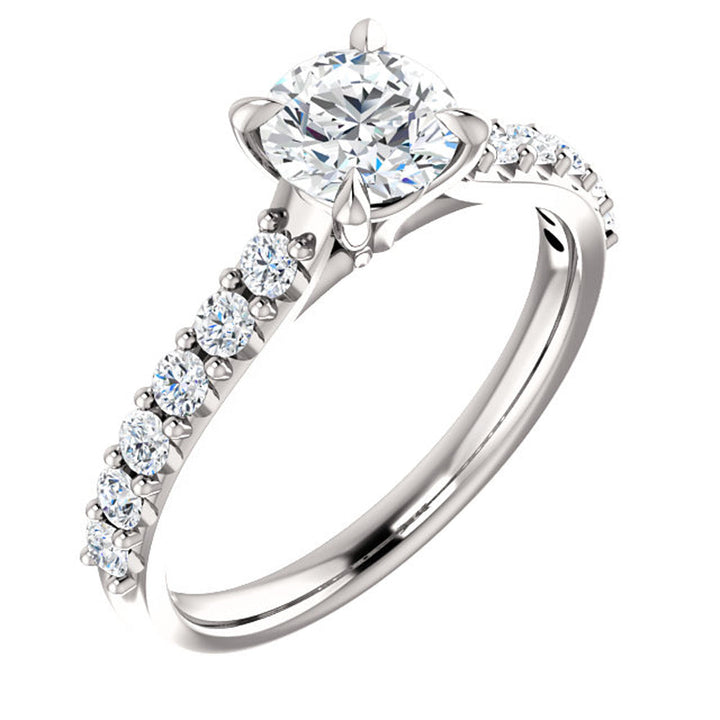 1 Ct Round Diamond Engagement Ring 14k White Gold Prong Set Single Row