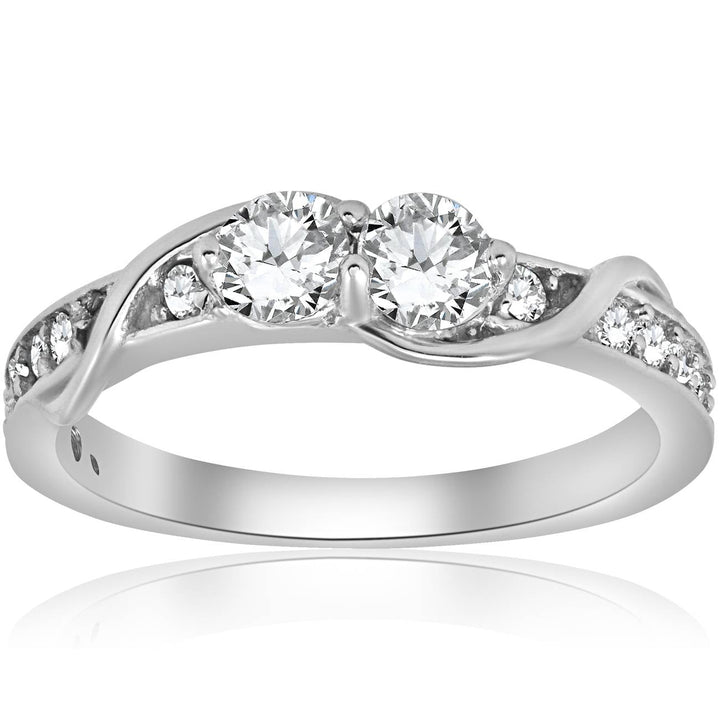 5/8ct Diamond Two Stone Forever Us Crossover Engagement 10k White Gold Ring