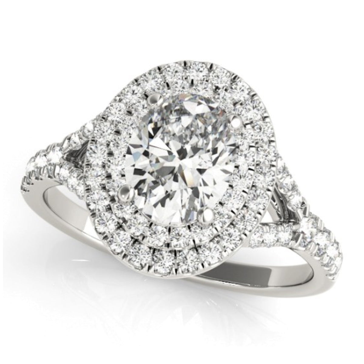 1 5/8 Ct Oval Diamond Engagement Halo Ring & Matching Band 14k White Gold