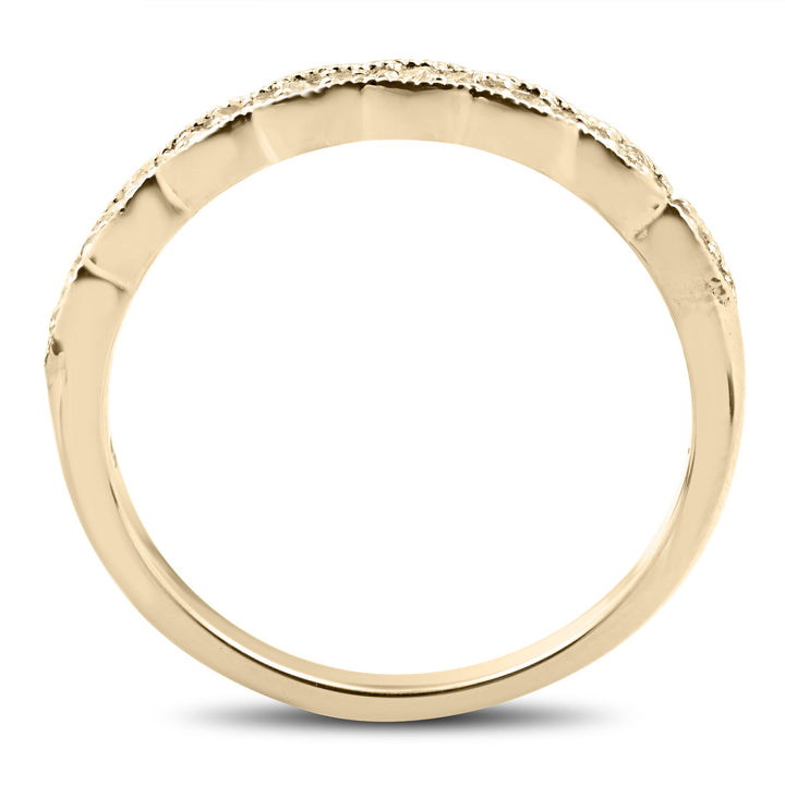 This 1/4 Ct Diamond Stackable Women’s Wedding Ring by Pompeii3 is a refined and versatile addition to any jewelry collection. Featuring 24 round-cut diamonds set in warm 14K yellow gold, this band is perfect for stacking with other rings or complementing an engagement or anniversary ring. Its timeless elegance makes it a sophisticated choice for everyday wear.