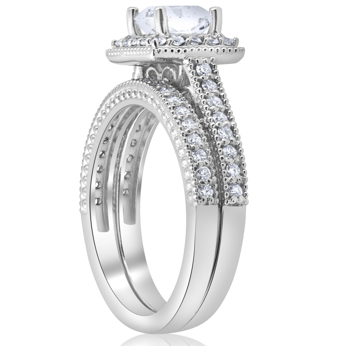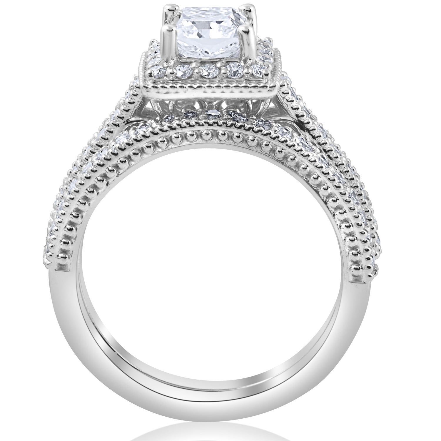 1 1/2ct Princess Cut Halo Vintage Diamond Engagement Ring 14k White Gold