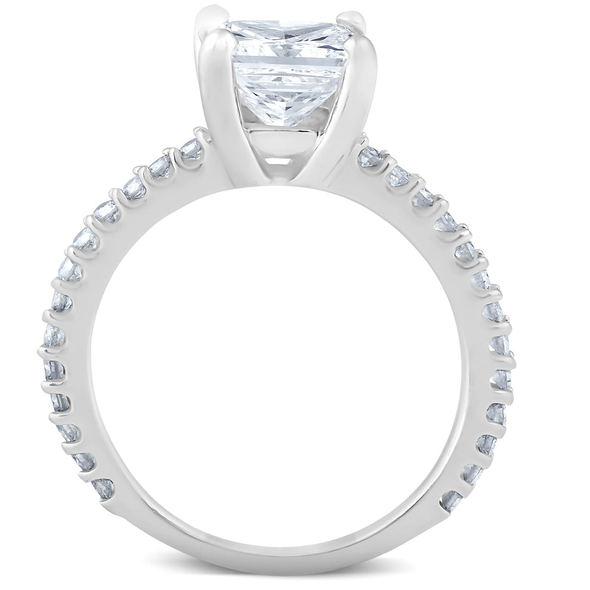 This 2 Ct Diamond Engagement Ring by Pompeii3 is a striking and luxurious design. A breathtaking 3 ct princess-cut lab-grown diamond serves as the focal point, enhanced by 26 round-cut accent diamonds along the band. Set in polished 14K white gold, this engagement ring exudes contemporary elegance and lasting brilliance.