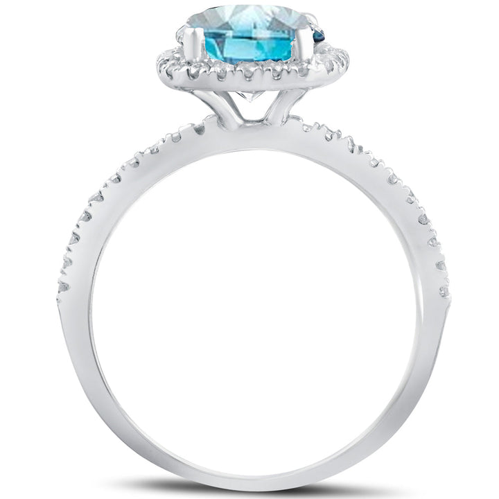 1 3/4 ct Blue Diamond Cushion Halo Engagement Ring 14k White Gold