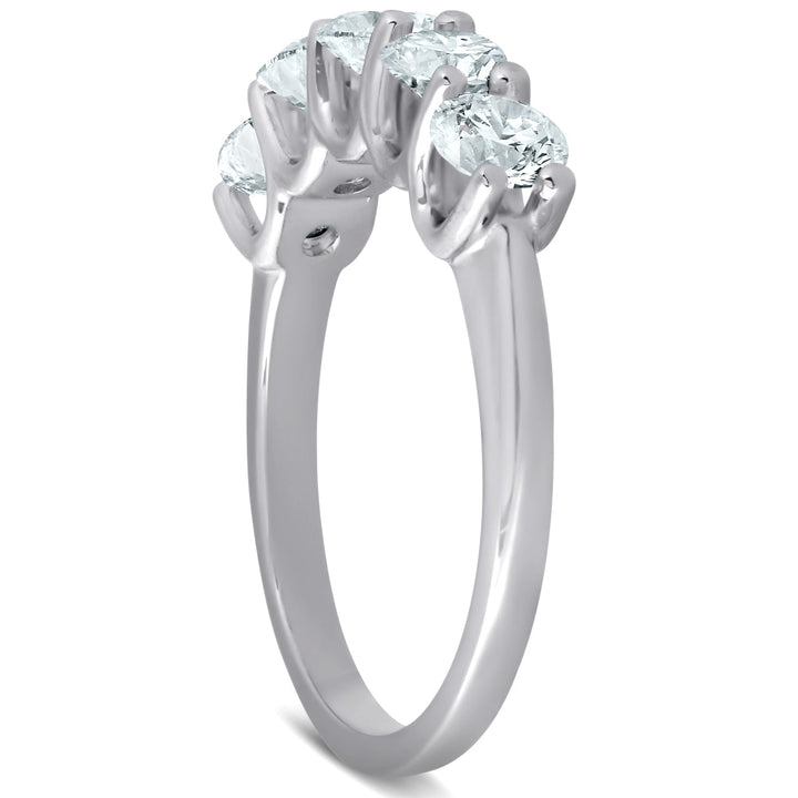 1 1/2 Ct EX3 Lab Grown Diamond Five Stone Wedding Ring 14k White Gold EX3 Lab Grown