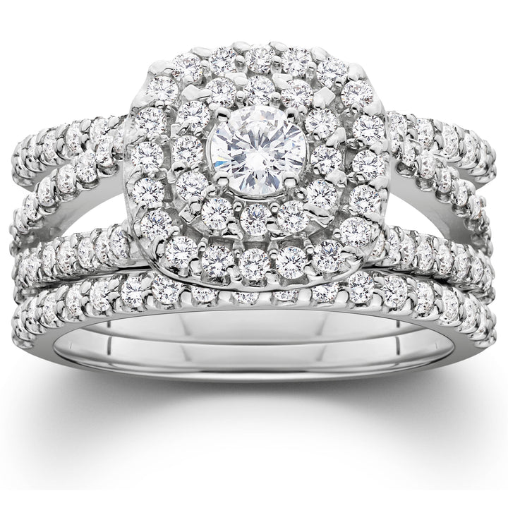 1 1/4ct Diamond Engagement Cushion Halo Wedding Ring Trio Set 10K White Gold