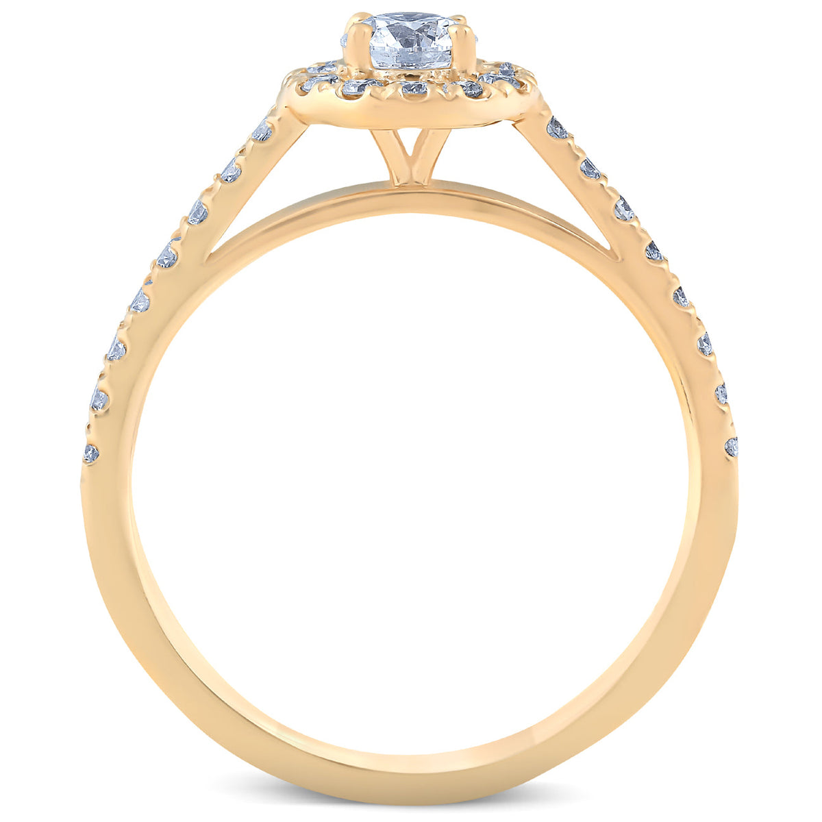 1Ct Halo Lab Grown Diamond Engagement Matching Wedding Ring Set 14k Yellow Gold