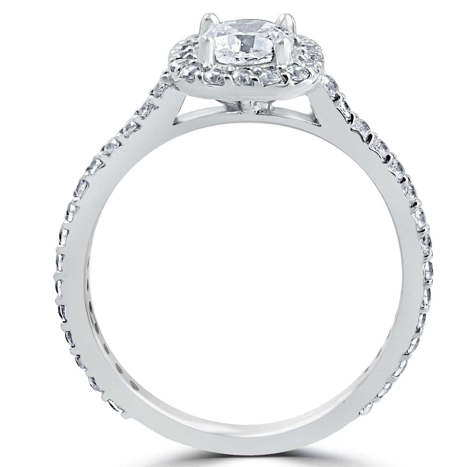 Platinum 1 1/5ct TDW Cushion Halo Round Diamond Engagement Ring