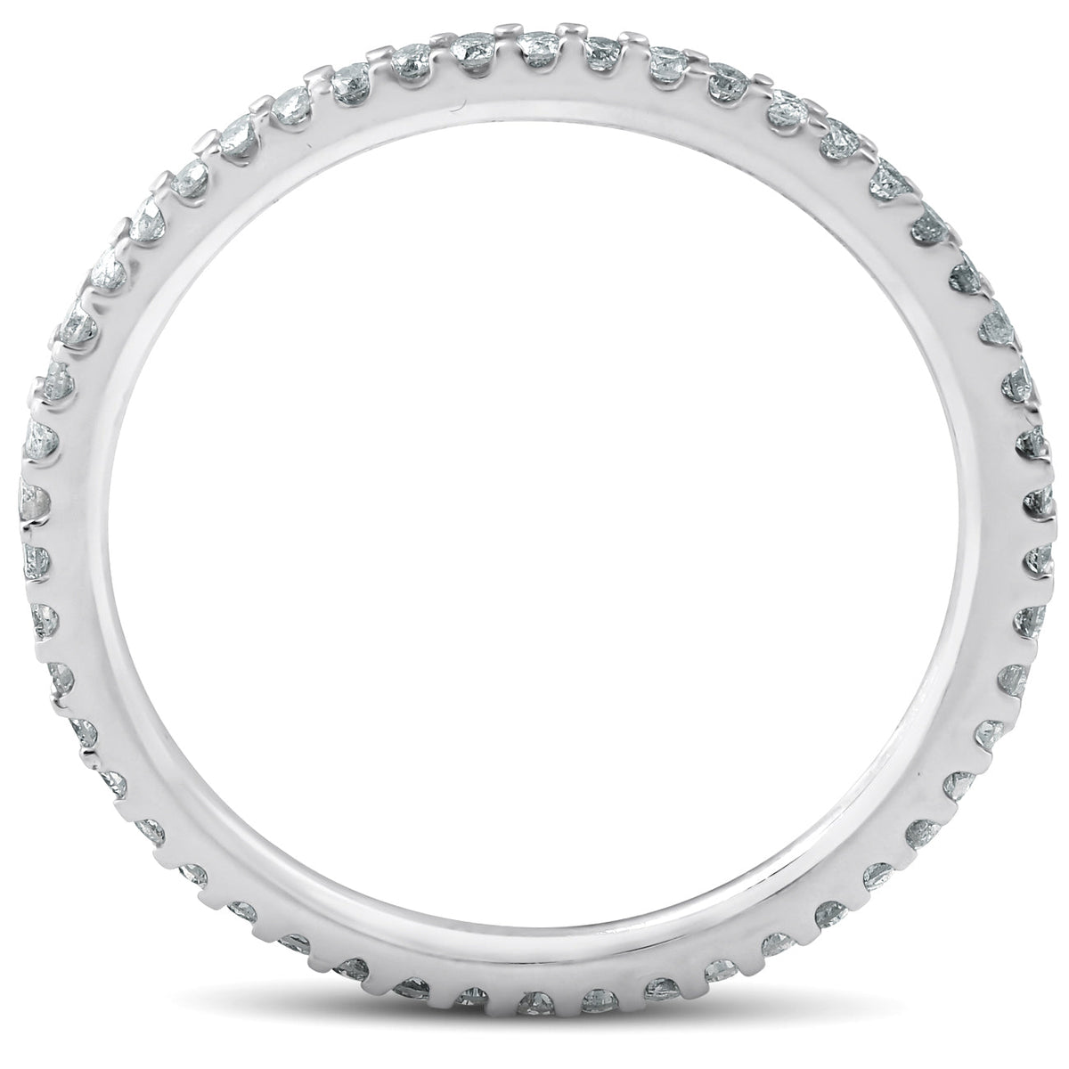 This 3/8ct Diamond Eternity Ring by Pompeii3 is a classic stackable wedding band, featuring round cut diamonds set in solid 14K white gold. The prong-set diamonds create a continuous sparkle, making it perfect for stacking with other rings or wearing alone. This eternity band represents eternal love and commitment.