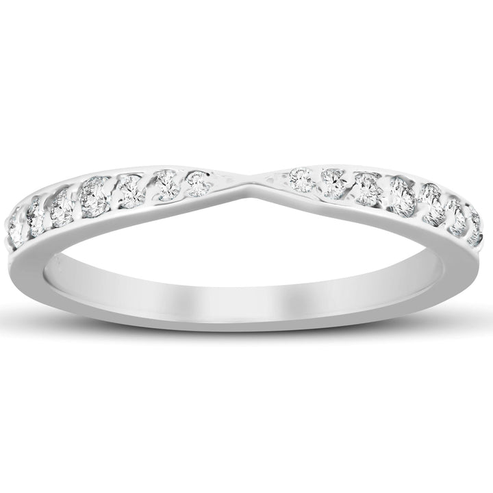 1/4Ct Diamond Stackable Tapered V Shape Womens Wedding Ring 10k White Gold