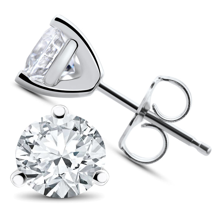 These 3/4 ct TDW Diamond 3-Prong Martini Studs by Pompeii3 feature round brilliant cut lab-grown diamonds set in a durable 3-prong basket setting. The diamonds' total weight is 3/4ct, offering a classic and sophisticated look. These studs are perfect for adding subtle sparkle to everyday wear or dressing up for special occasions.
