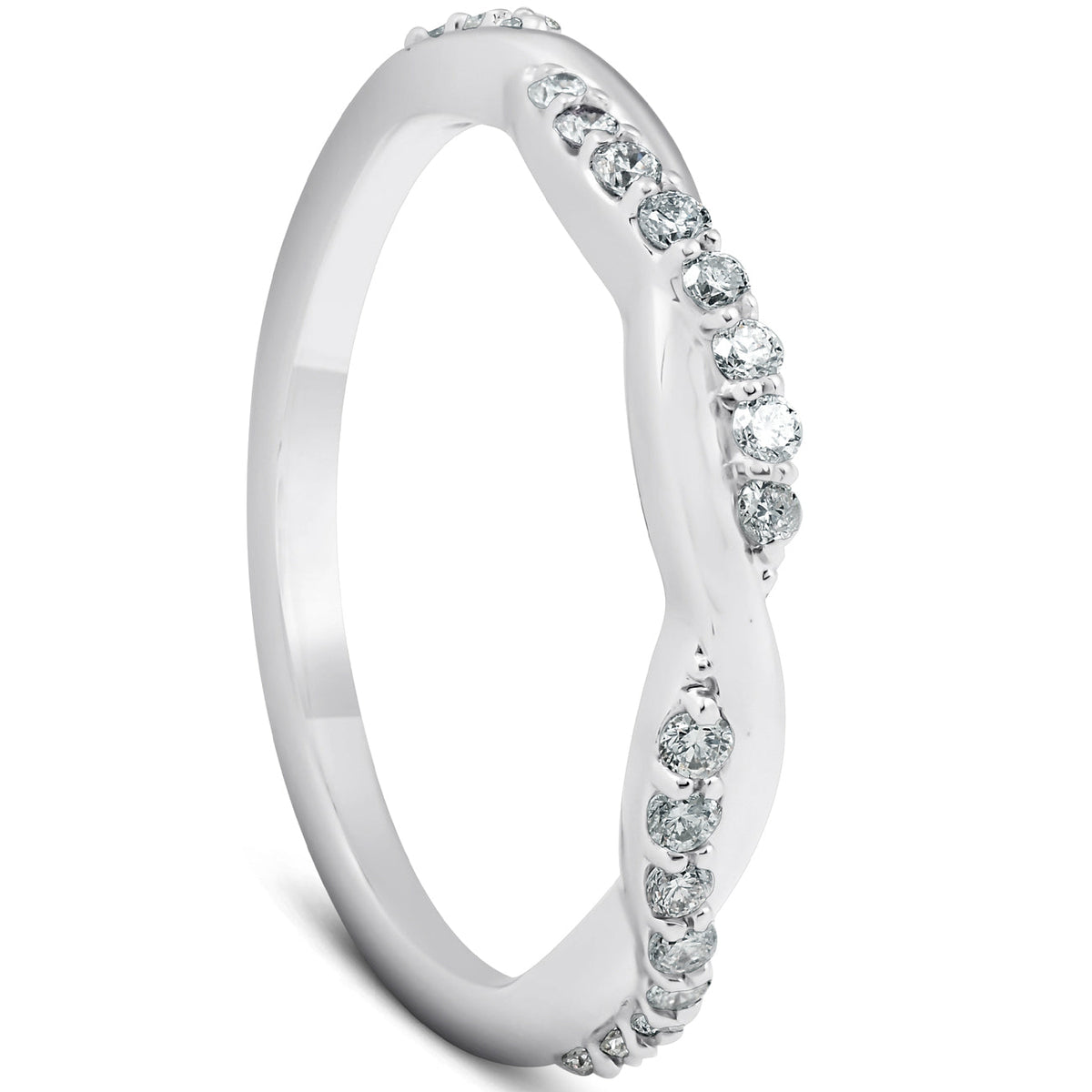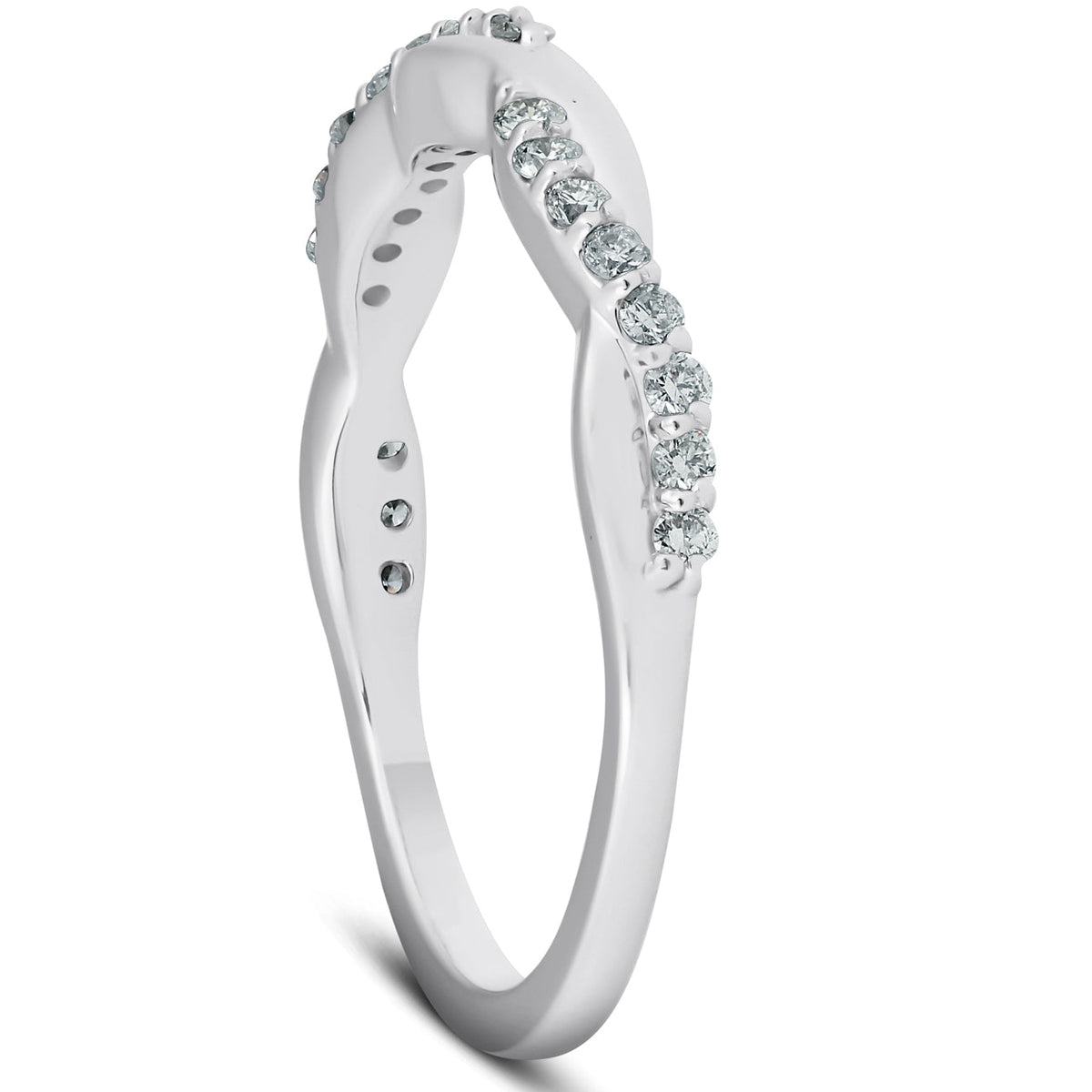 1/5Ct Diamond Infinity Wedding Ring Womens 14k White Gold Interwoven Stack Band