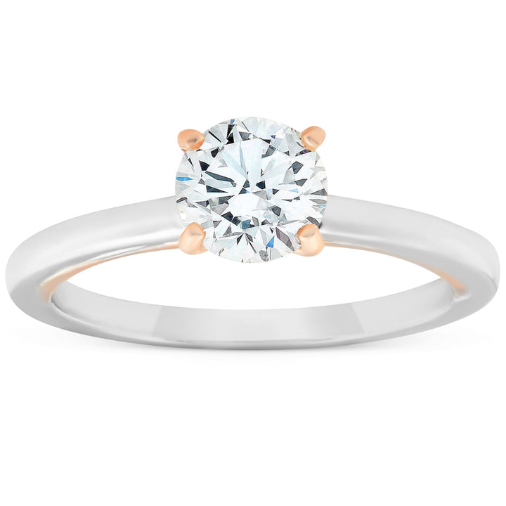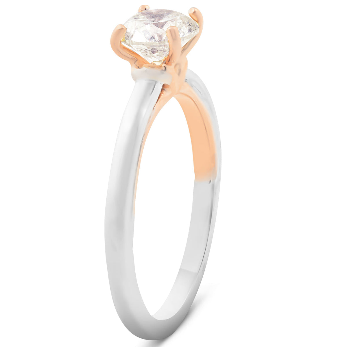 1 Ct Diamond Solitaire Two Tone Engagement Ring 14k White & Rose Gold