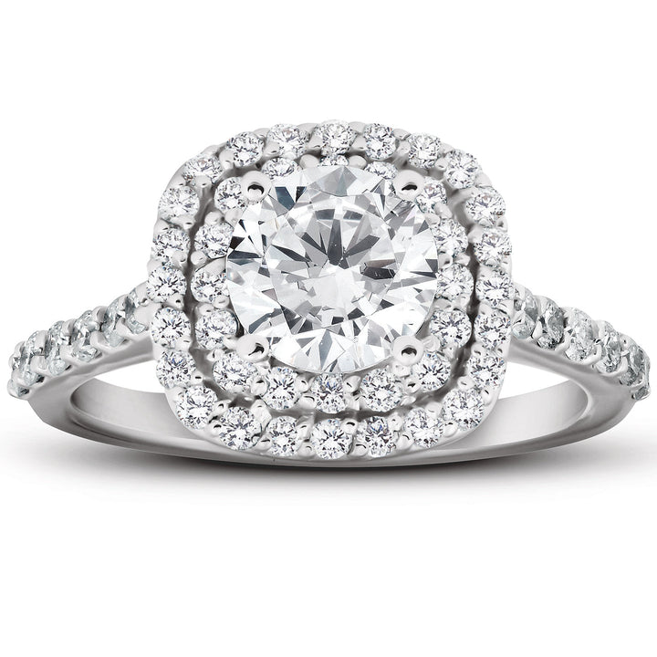 2 1/4 Ct Diamond Cushion Halo Engagement Ring 14k White Gold