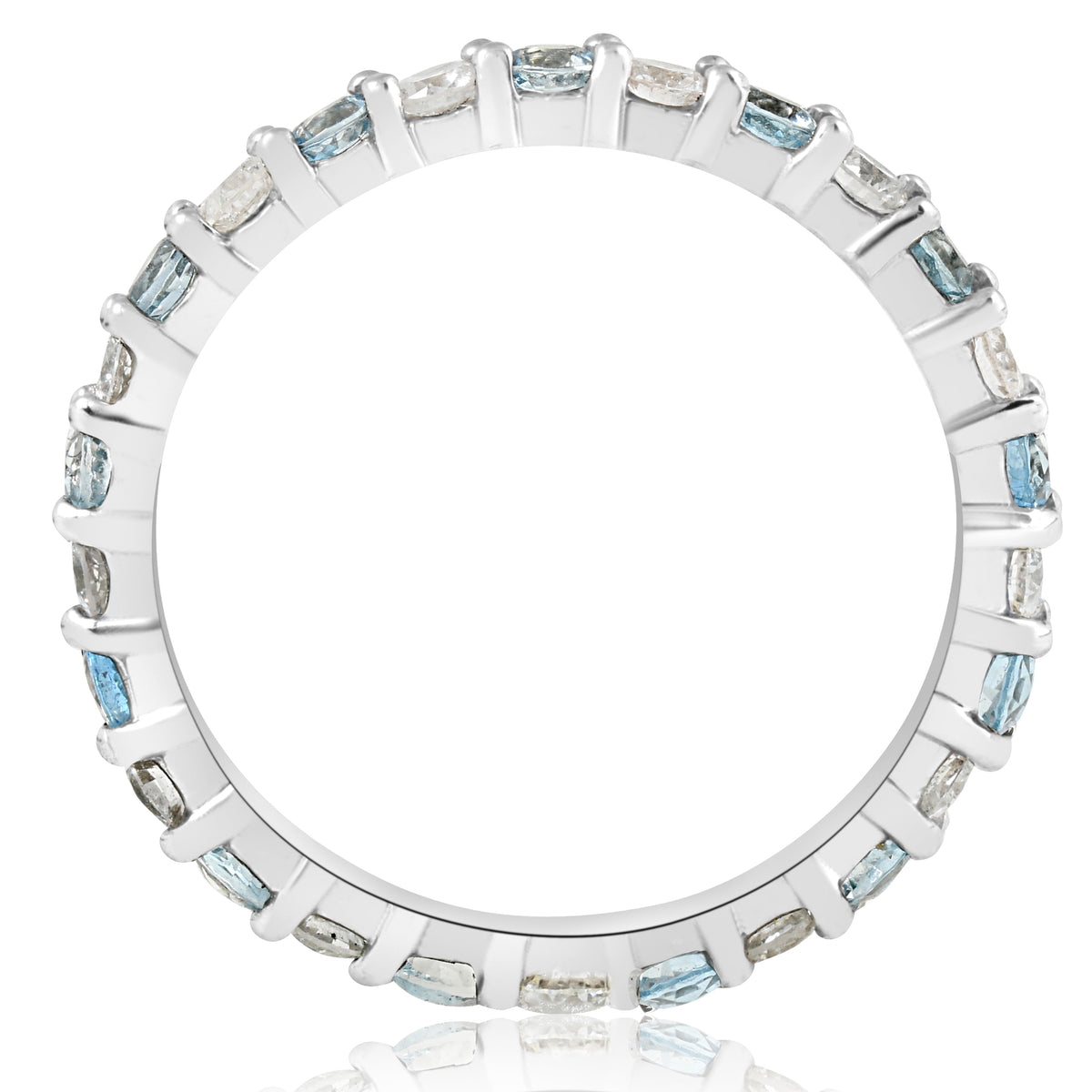 1ct Diamond & Aquamarine Eternity Ring Common Prong 14k White Gold Stackable