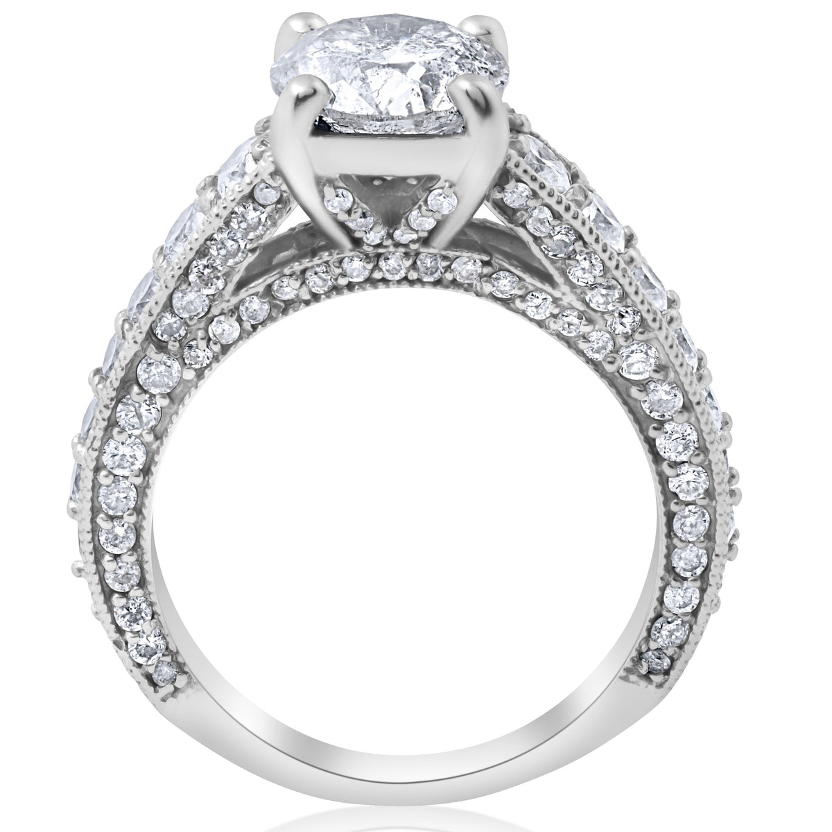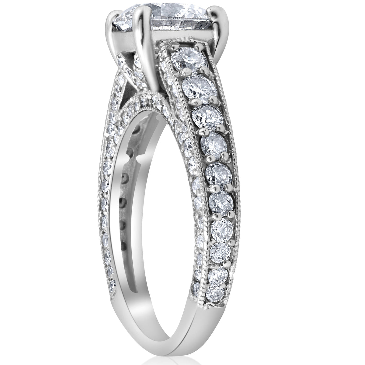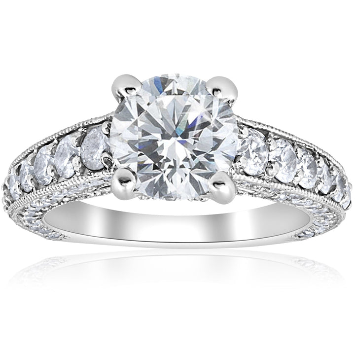 3 3/4 ct Round Diamond Heirloom Engagement Ring 14k White Gold