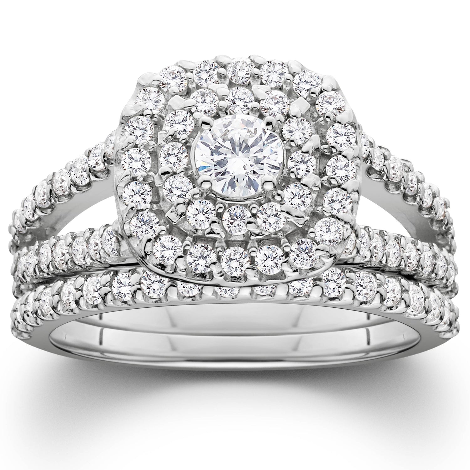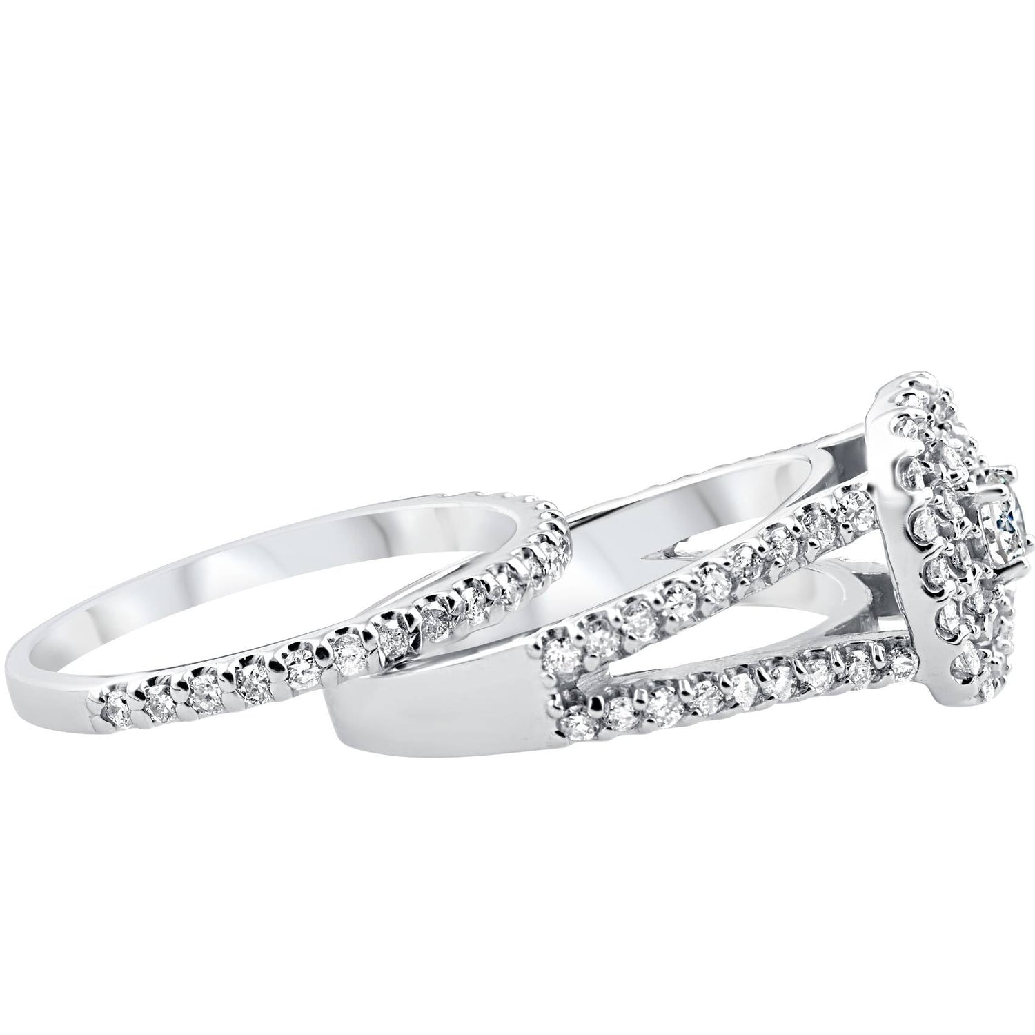 1 1/10ct Diamond Cushion Halo Engagement Wedding Ring Set Platinum