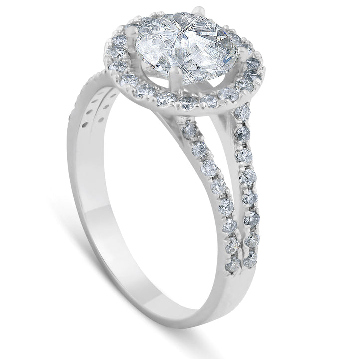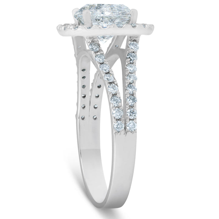 Platinum 2 Ct Diamond Halo Engagement Ring Split Band Size 6.5