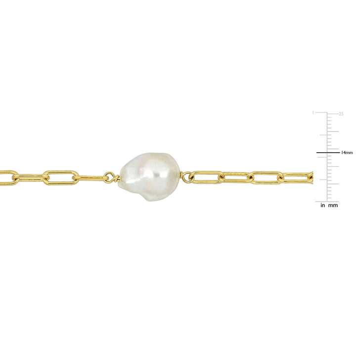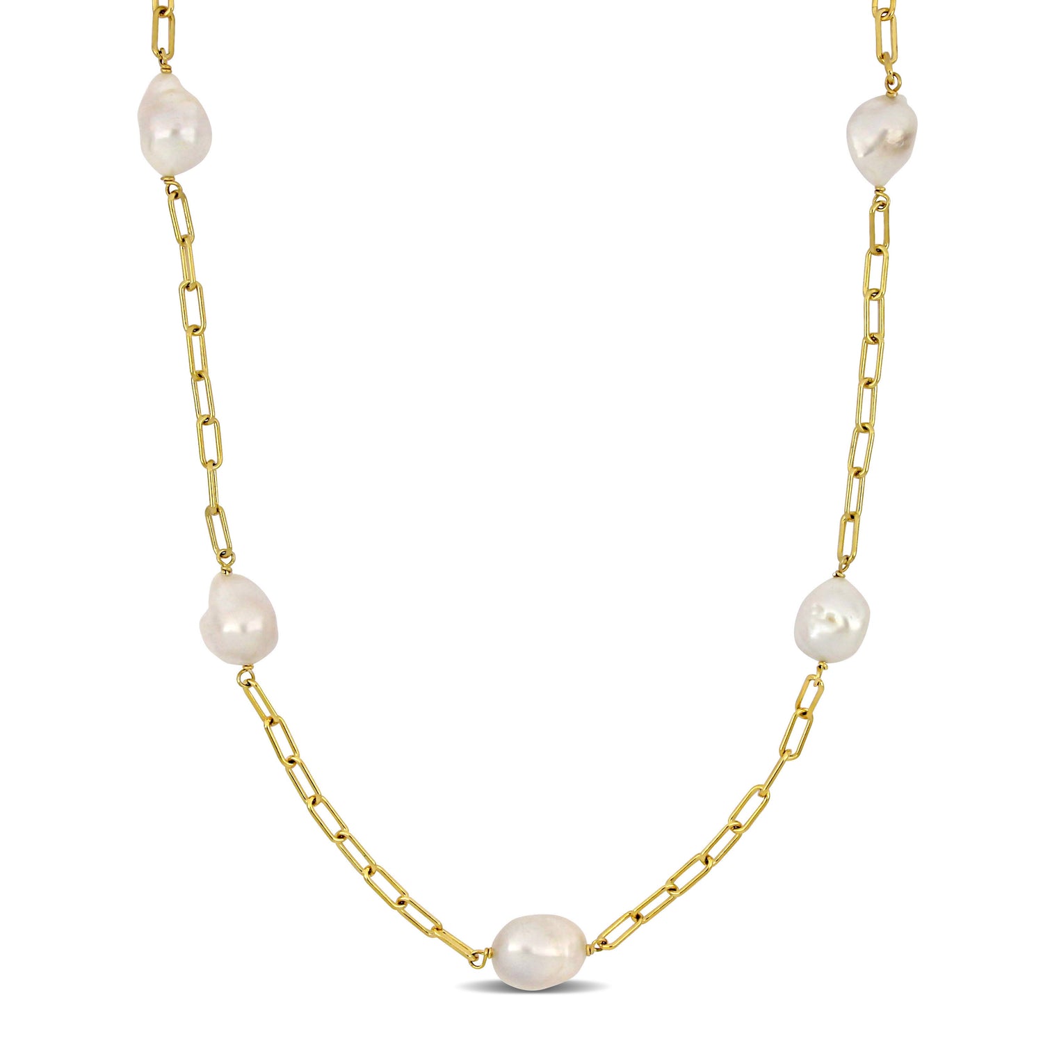 18k yellow gold-plated sterling silver setting. Seven fancy-shaped cultured freshwater pearls (12-14 mm). 34-inch oval link chain. Secured with a lobster clasp. High-polish finish.