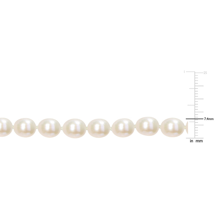 18k yellow gold-plated sterling silver setting. Rice-shaped white freshwater cultured pearls (7-7.5 mm). Halfway oval link chain. Secured with a lobster clasp. High-polish finish.