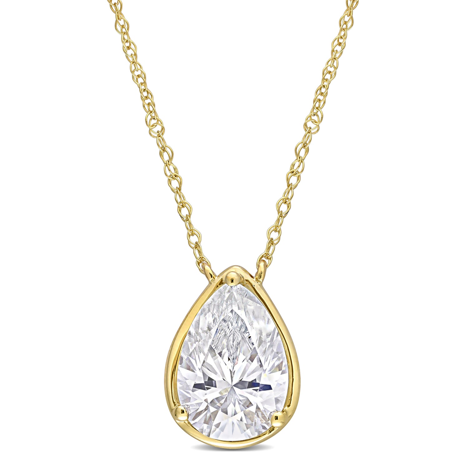 2 CT DEW Created Moissanite Teardrop Pendant with Chain in 10k Yellow Gold