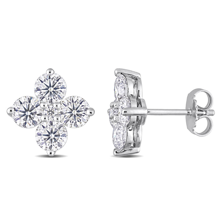 3 CT DEW Created Moissanite Floral Stud Earrings in Sterling Silver