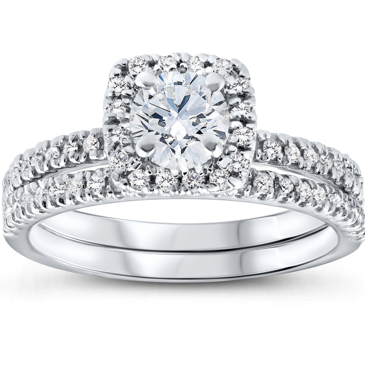5/8 Ct Lab Grown Diamond Cushion Halo Engagement Wedding Ring Set White Gold EX3
