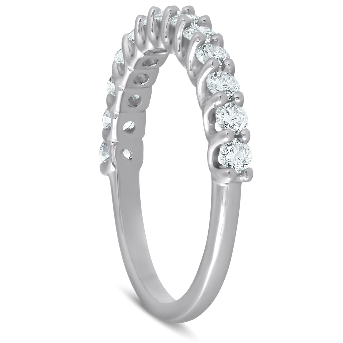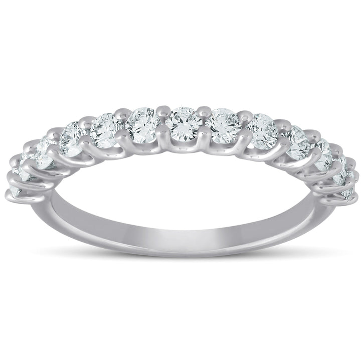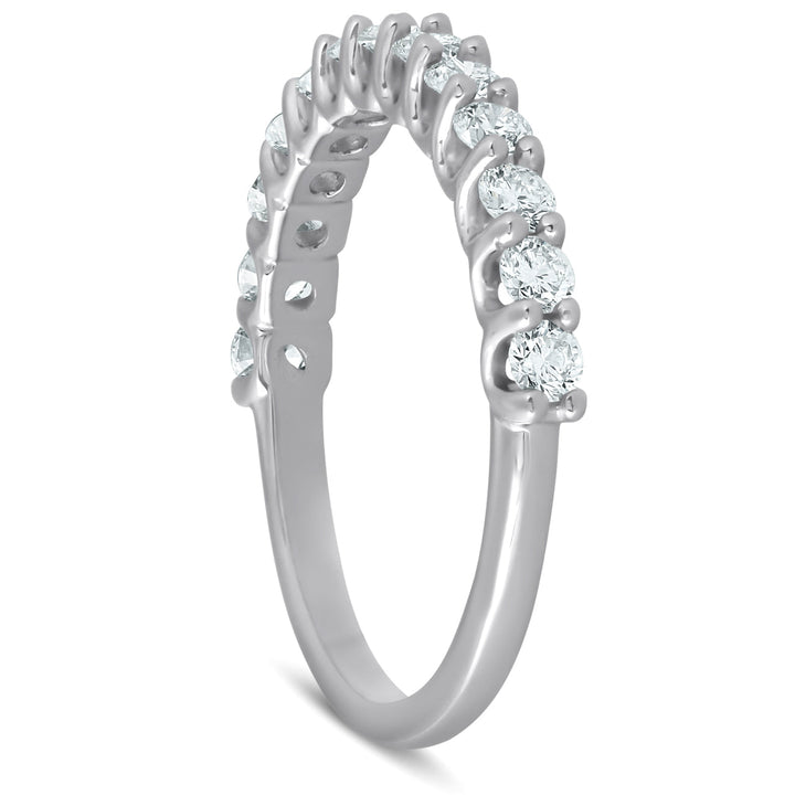 This 3/4 CT Diamond Wedding Ring by Pompeii3 is a delicate yet dazzling piece. Featuring 13 round brilliant-cut lab-grown diamonds in a U-prong setting, this ring is crafted in solid 14k white gold with a high-polish finish for a refined and modern look.