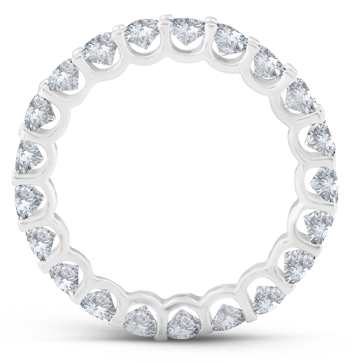 Solid 14k white gold setting. Round-cut diamonds encircling the entire ring. U-prong setting. Diamond clarity: I2-I3. Diamond color: H-I. High-polish finish.