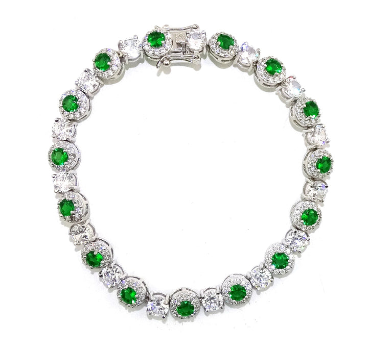 This White Cubic Zirconia & Emerald Bracelet by Savvy Cie brings a touch of elegance to any outfit. The sterling silver bracelet is adorned with a mix of shimmering cubic zirconia and rich emerald accents for a sophisticated finish.