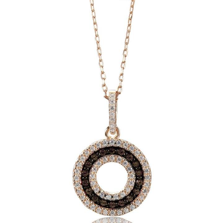 Rosed Sterling Silver Brown Cubic Zirconia 3-Row Circle Pendant