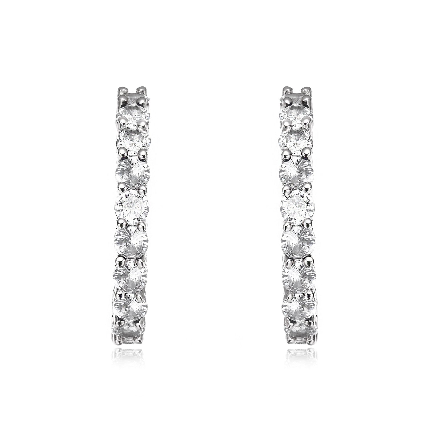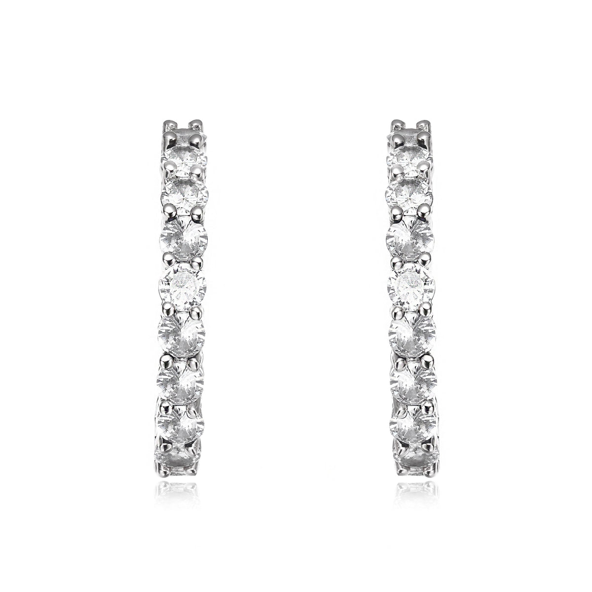 These White Gold Plated Diamond Cubic Zirconia Inside Out Hoop Earrings by Genevive Jewelry redefine classic elegance. Designed with a seamless row of sparkling round brilliant-cut cubic zirconias set inside and outside, these hoops maximize brilliance from every angle. A timeless silhouette with modern refinement, these earrings are a must-have for everyday glamor and special occasions alike.