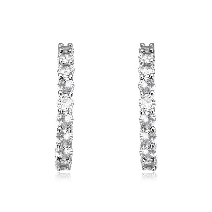 Crafted in white gold-plated metal, featuring round brilliant-cut diamond cubic zirconias in a prong-set inside-out hoop design. Secured with hinged posts for a secure and comfortable fit.
