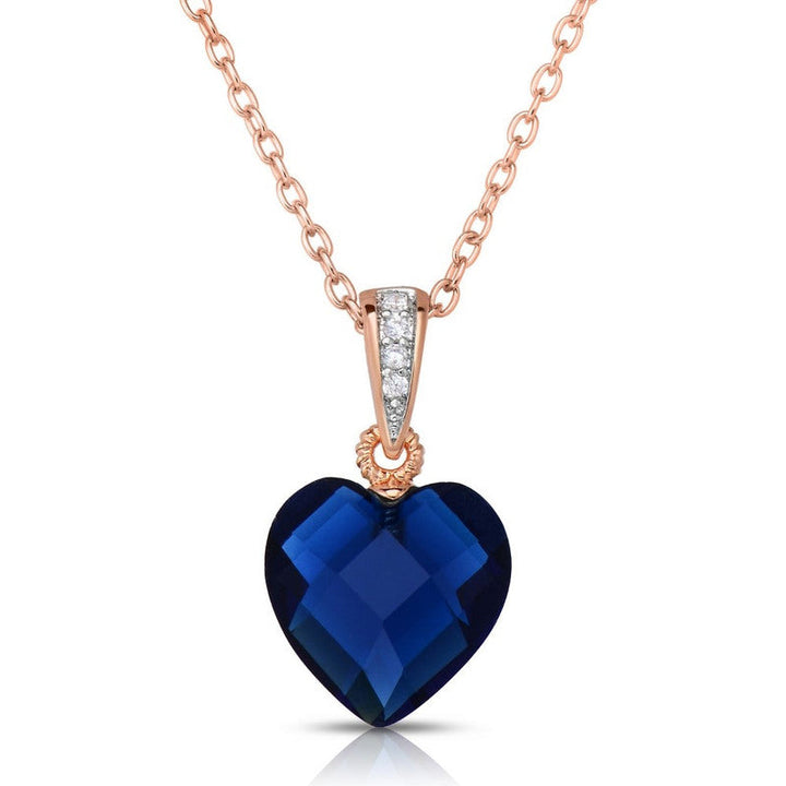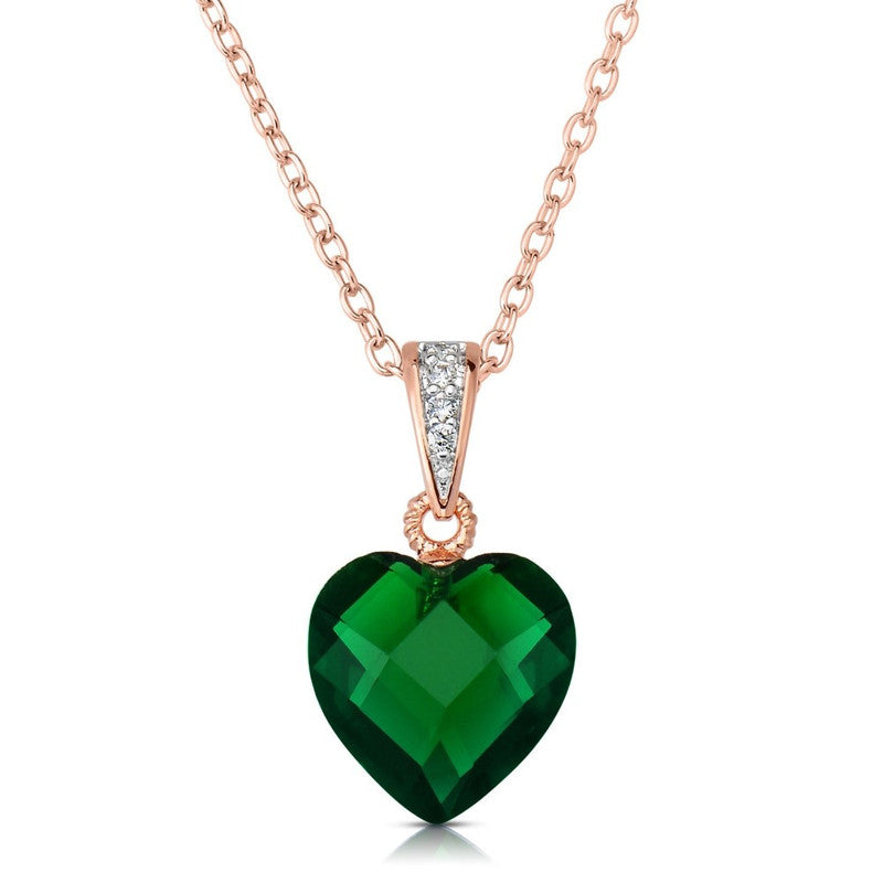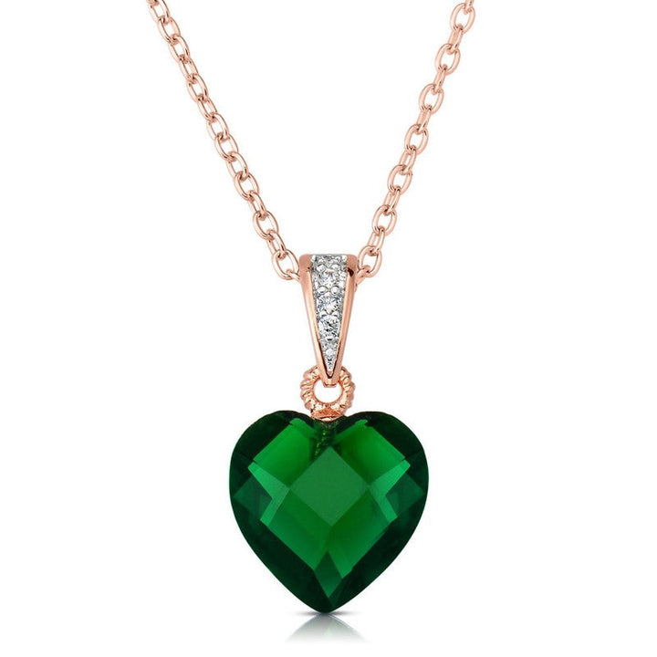 Crafted in .925 sterling silver, available in white gold plating or 18K rose gold plating, featuring a heart-shaped cubic zirconia in white, emerald green, ruby red, or sapphire blue. Secured with a spring ring clasp. Chain length: 16 inches.