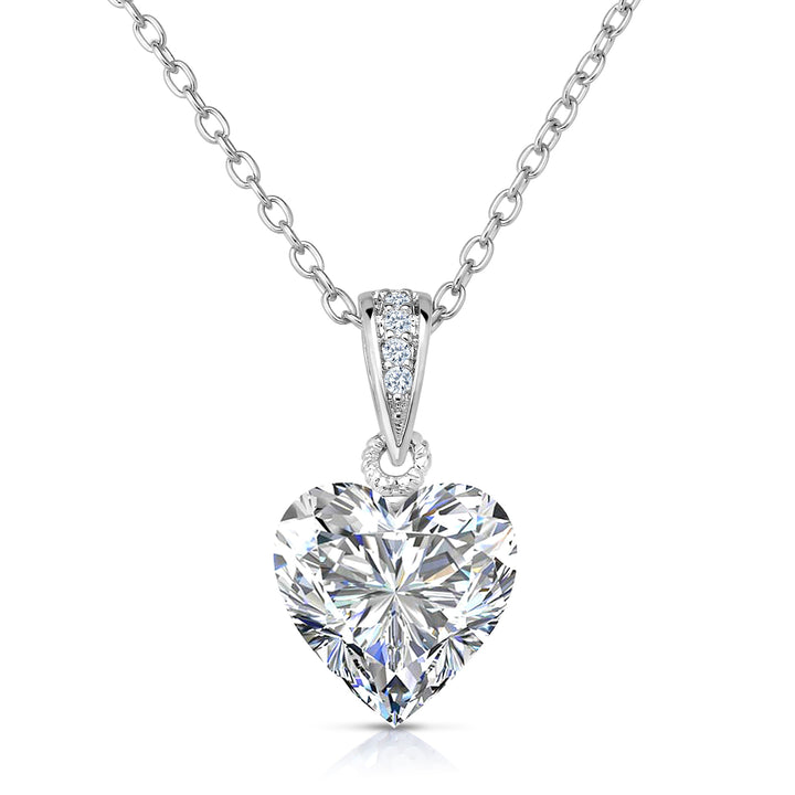 Sterling Silver White Cubic Zirconia Heart-shape Pendant Necklace