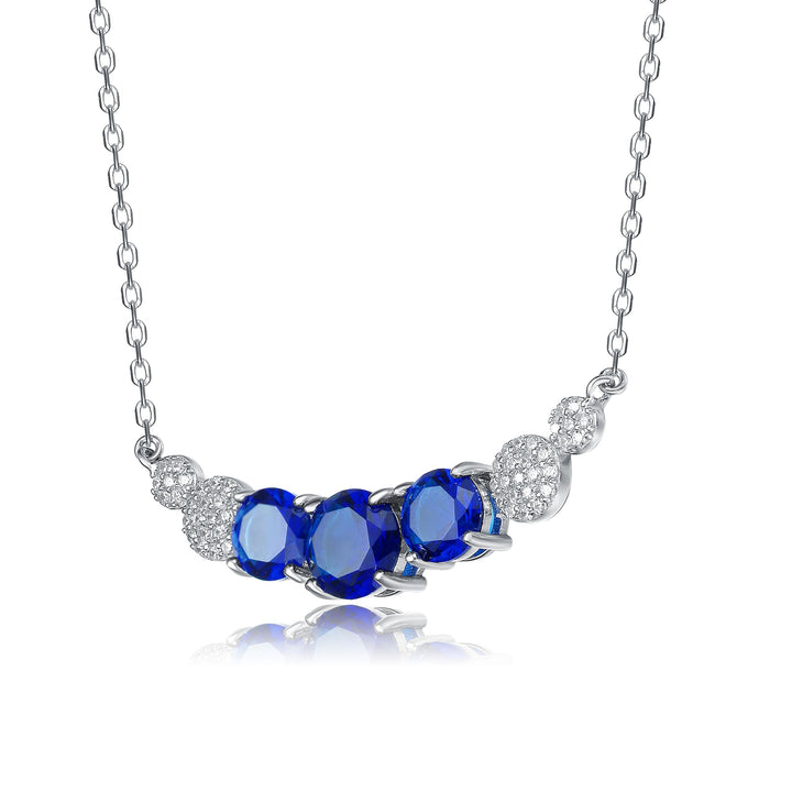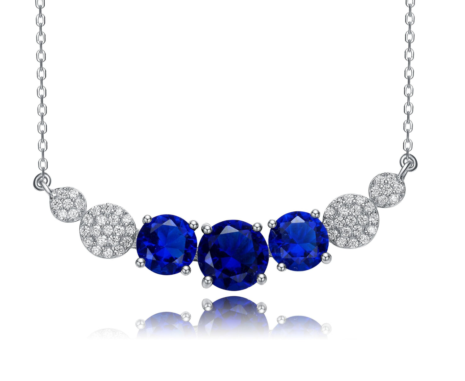 Designed in .925 sterling silver, featuring round-cut blue sapphire cubic zirconias accented by clusters of round brilliant-cut diamond cubic zirconias. Suspended from a delicate cable chain, secured with a lobster clasp.