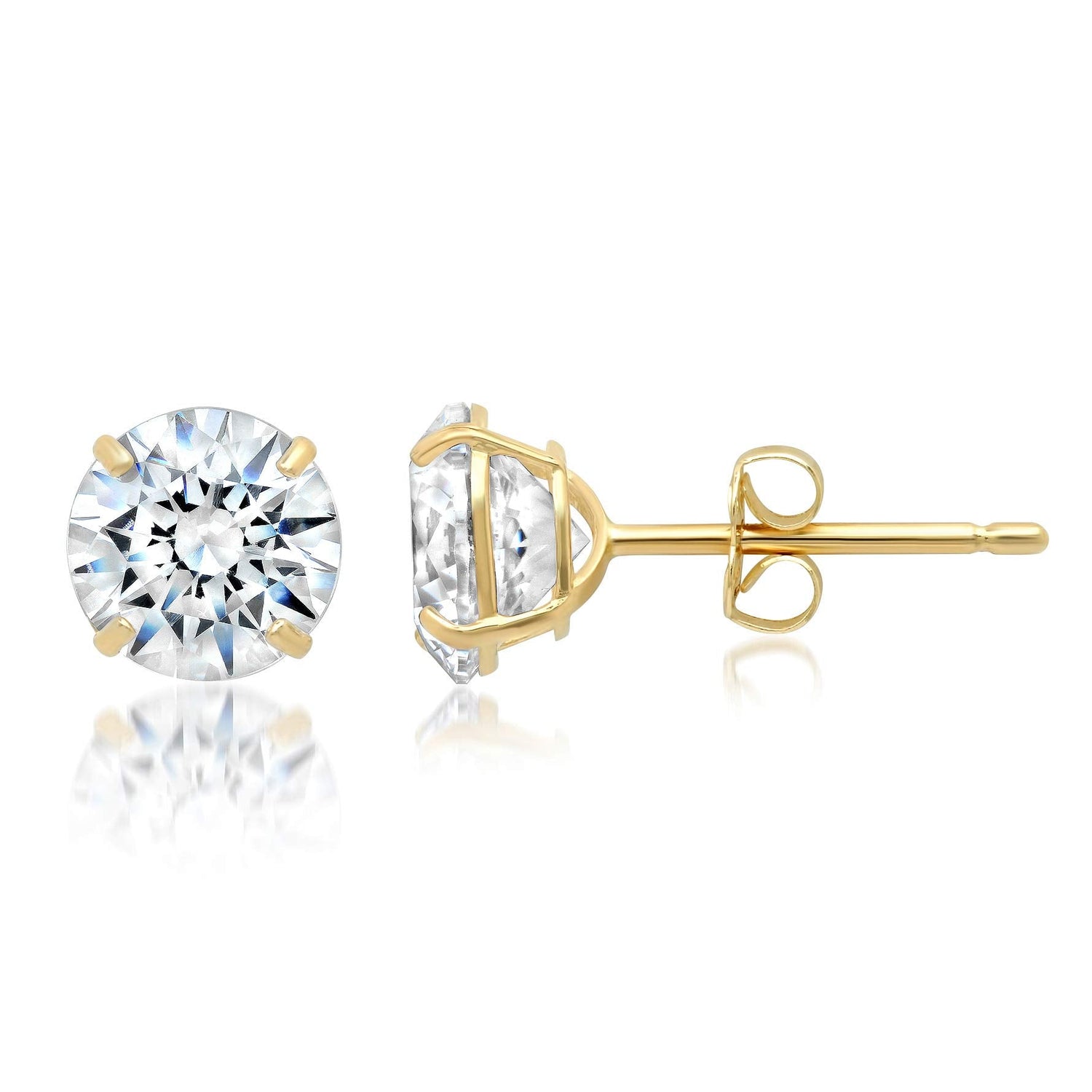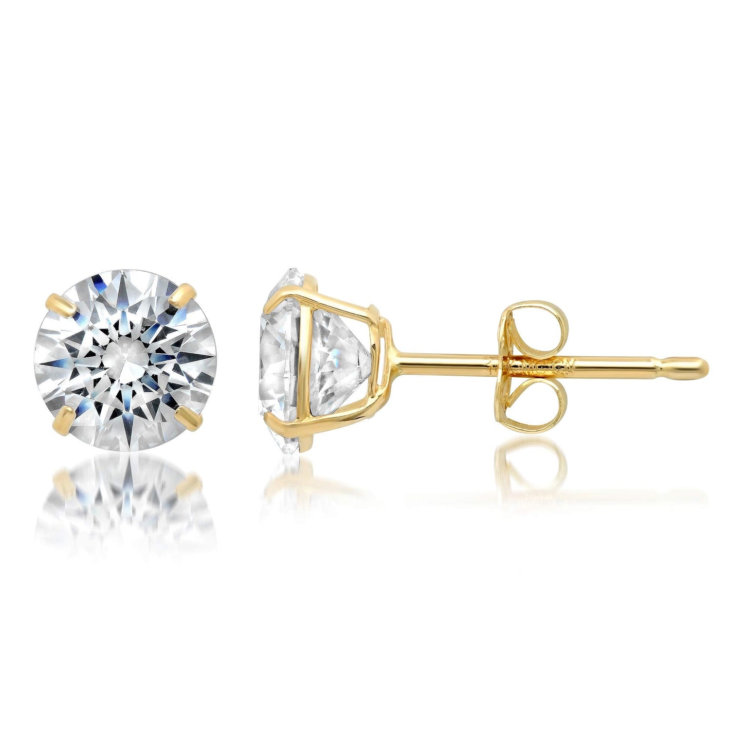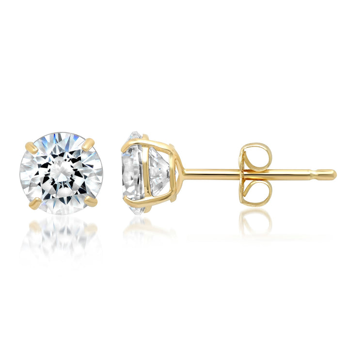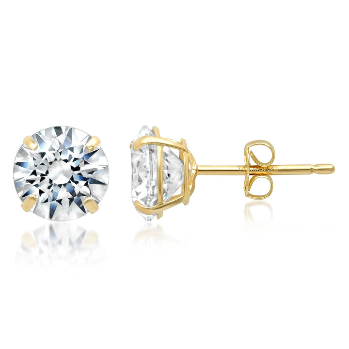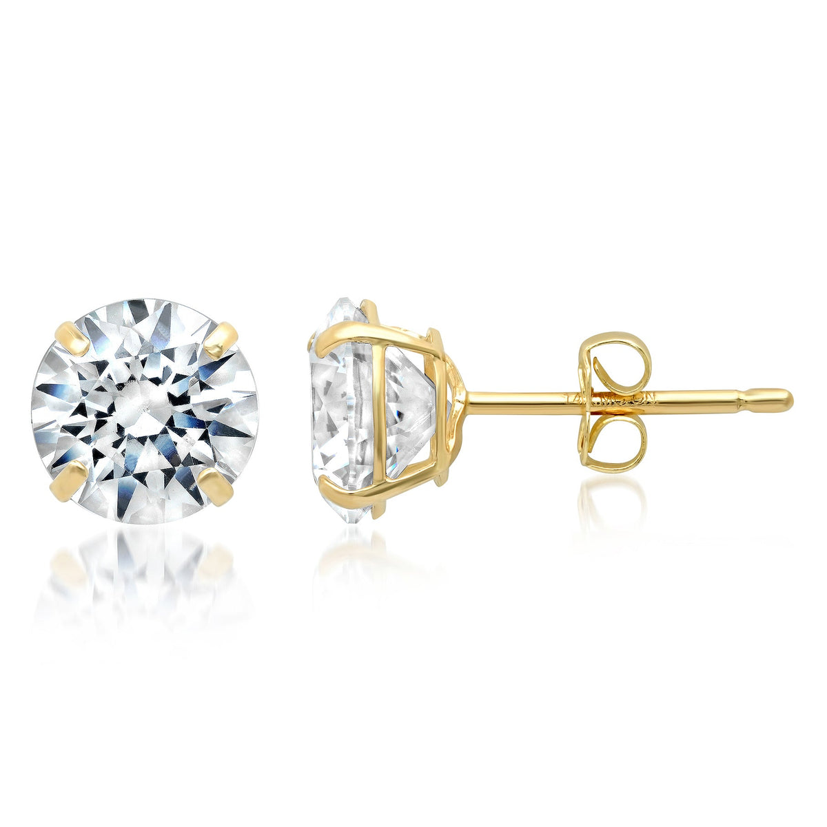 14k Solid Gold Round Cut Stud Earrings with Genuine Swarovski Zirconia
