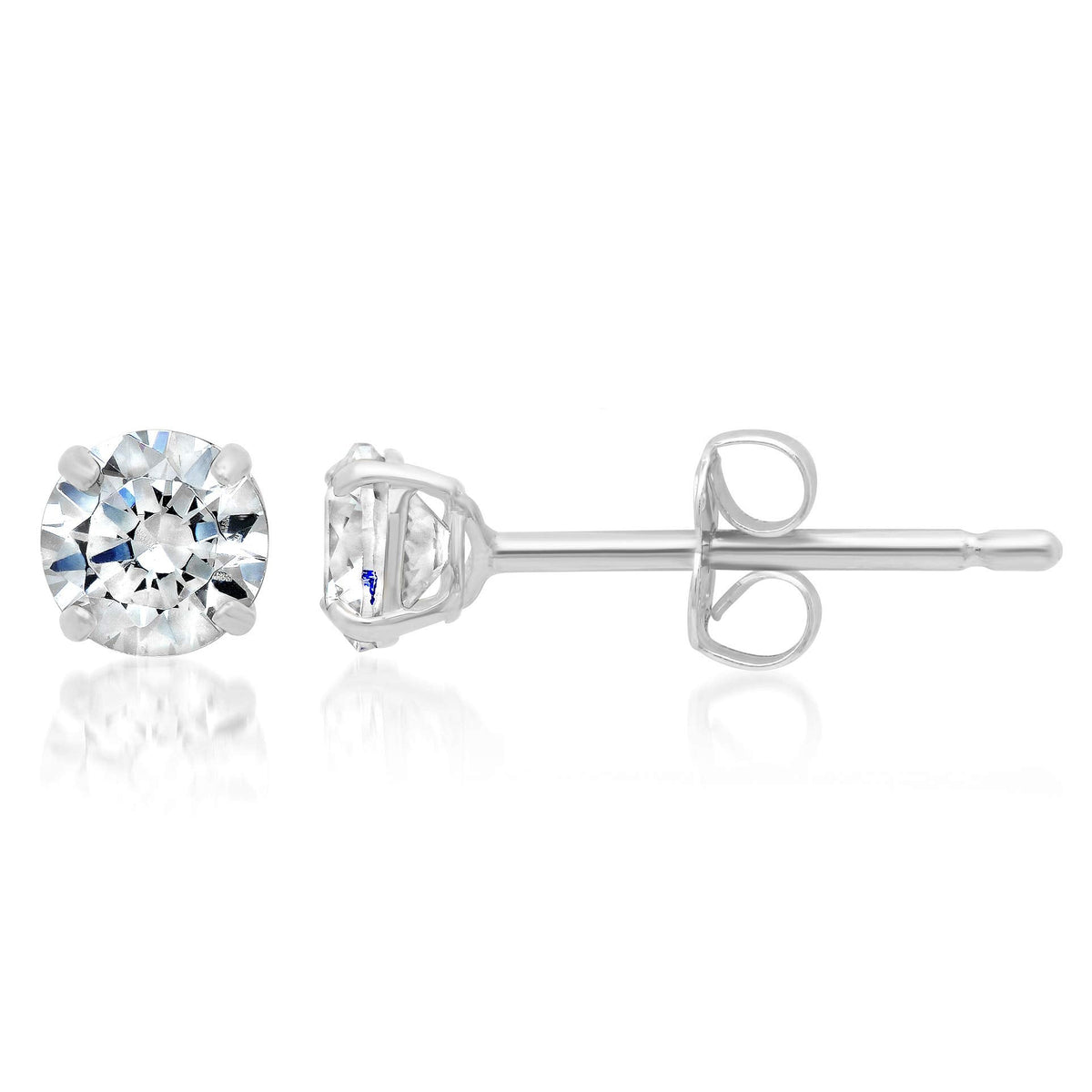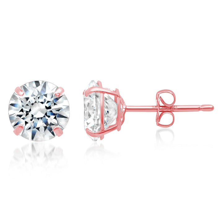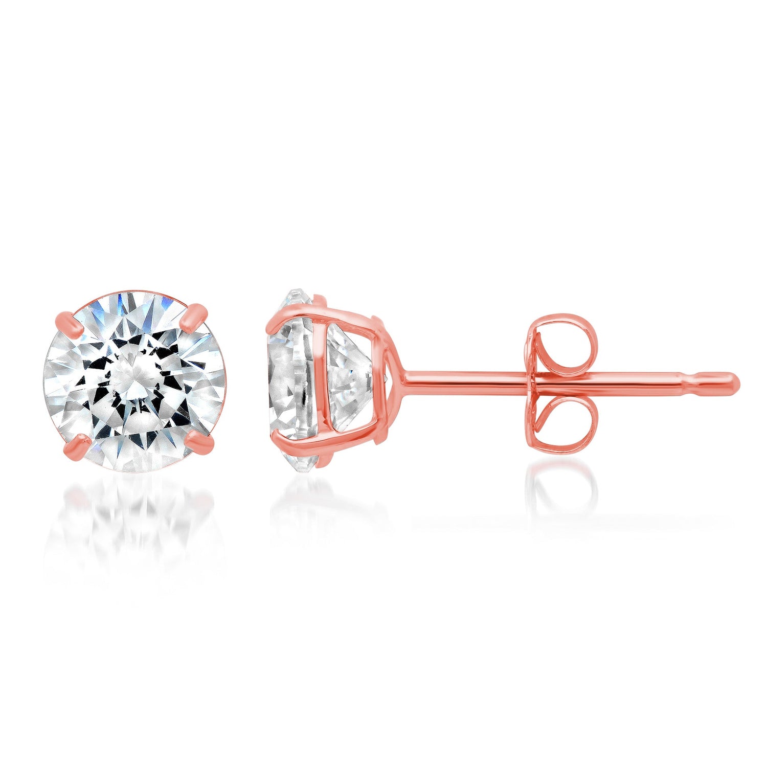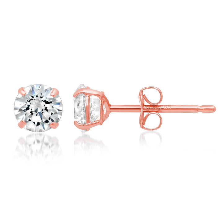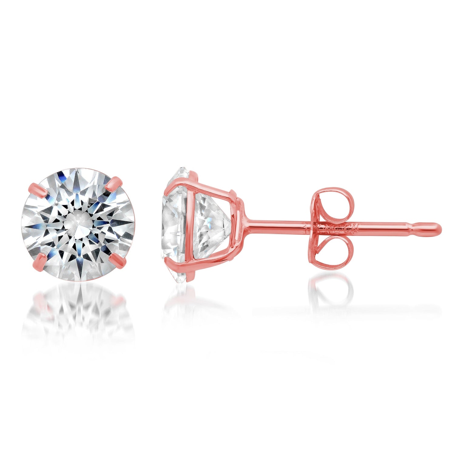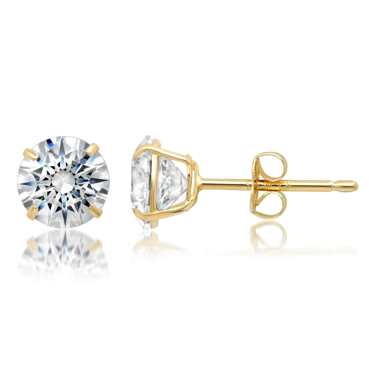 14k Solid Gold Round Cut Stud Earrings with Genuine Swarovski Zirconia
