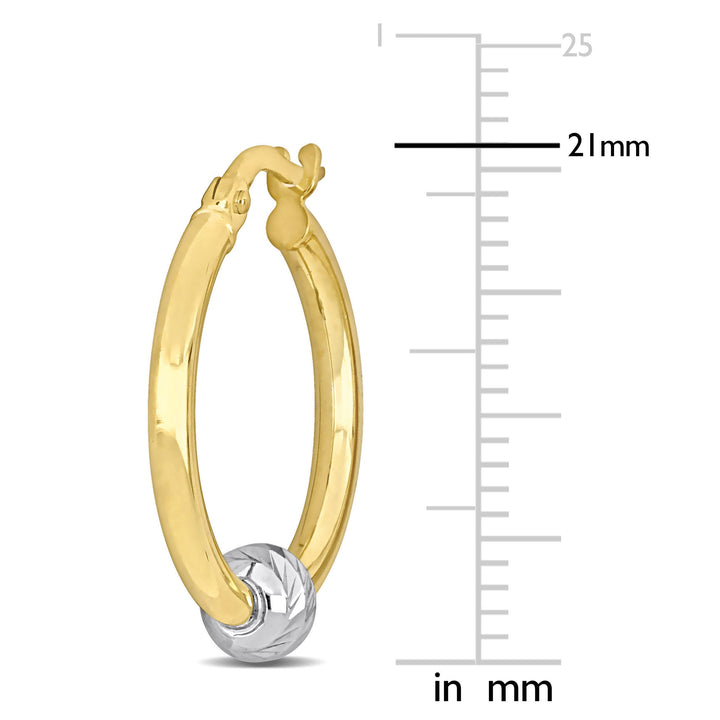 21 MM Hoop Earrings with Ball in 2-Tone Yellow and White 14K Gold