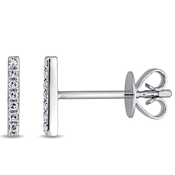 Crafted in 14K white gold. Features round-cut diamonds (G-H, SI). Vertical bar design.