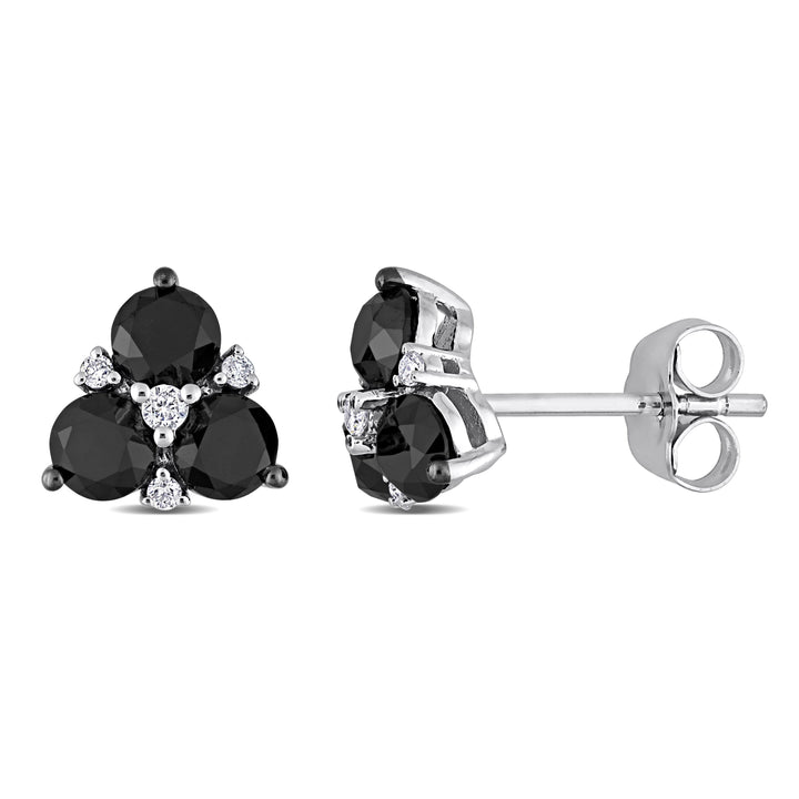 1 1/2 CT TW Black and White Diamond Stud Earrings in 10K White Gold