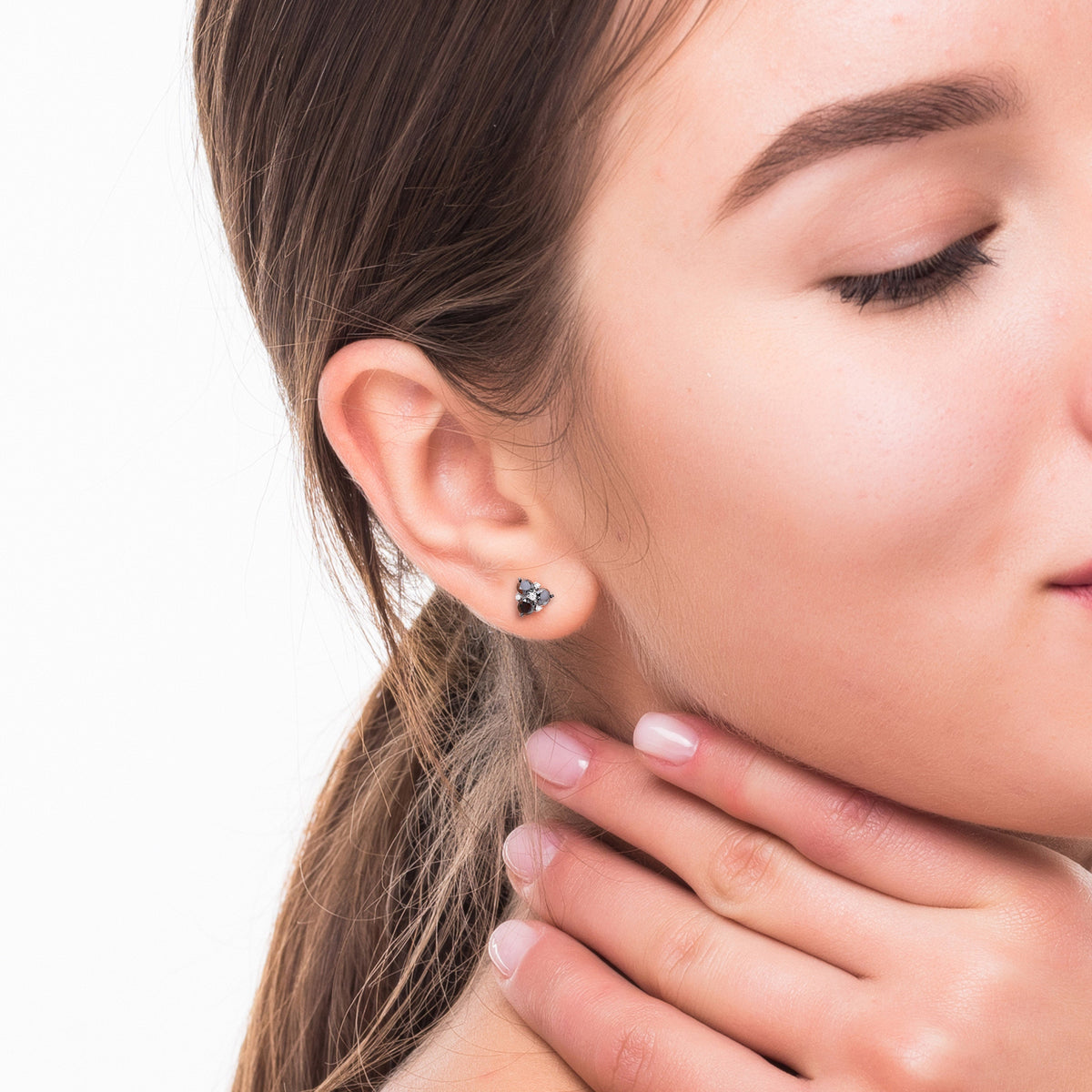 These Black and White Diamond Stud Earrings by Mimi & Max create a striking contrast with their bold clustered design. Set in gleaming white gold, the earrings feature six round-cut black diamonds paired with eight round-cut white diamonds, forming a unique and modern composition. Their high-polish finish enhances their brilliance, making them a sophisticated choice for any occasion. Secured with butterfly backs for a comfortable fit.